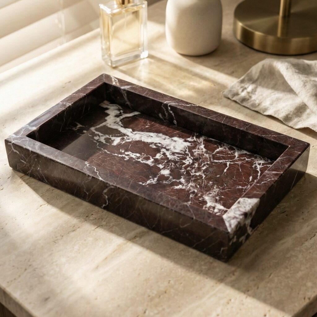 Tace marmurowe to kolejna propozycja naszej pracowni – możesz je wykorzystać jako element dekoracyjny, podstawkę na świece, serwis do kawy, a nawet paterę na owoce. Każda taca to unikalny wzór, wynikający z naturalnej struktury kamienia. To nie tylko funkcjonalny dodatek, ale także mała rzeźba, która wprowadzi do wnętrza szlachetność i klasę.