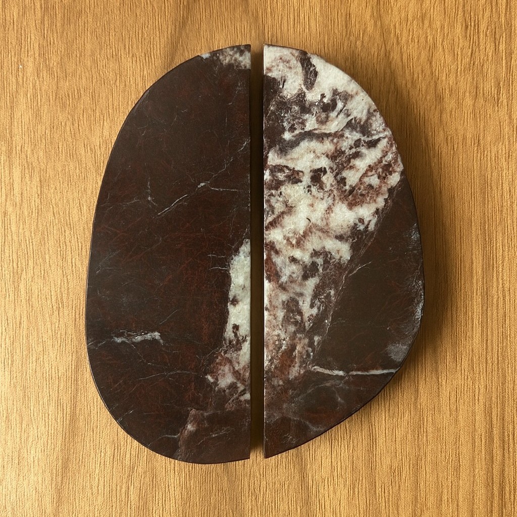 Współpracujemy z lokalnymi zakładami kamieniarskimi oraz hurtowniami kamienia, w których powstają fragmenty płyt, odcięte elementy lub płyty uszkodzone w sposób losowy. Dla przemysłu są one często problemem utylizacyjnym. Dla Marmurowej Pracowni stają się punktem wyjścia do projektowania. Około 95% naszych wyrobów powstaje właśnie z takich pozostałości – materiałów, które zyskują nową funkcję, formę i wartość.