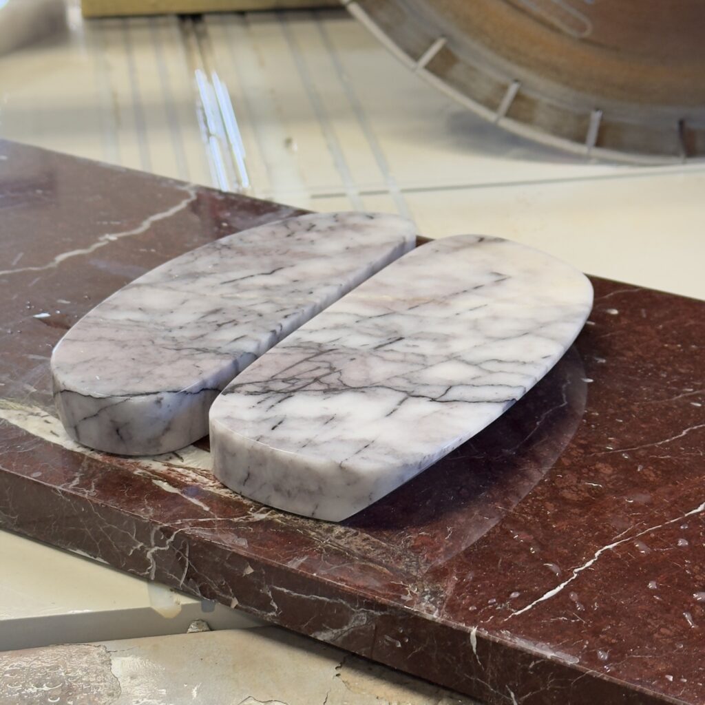 Marmurowa Pracownia oferuje jedyną w Polsce możliwość stworzenia uchwytów meblowych z kamienia idealnie dopasowanych do kamienia we wnętrzu. Dzięki temu możliwe jest ograniczenie ilości odpadów i wykorzystanie surowca w 100%. To nie tylko ekologiczne podejście, ale też szansa na pozyskanie uchwytów z kamieni, które w sprzedaży detalicznej występują rzadko.