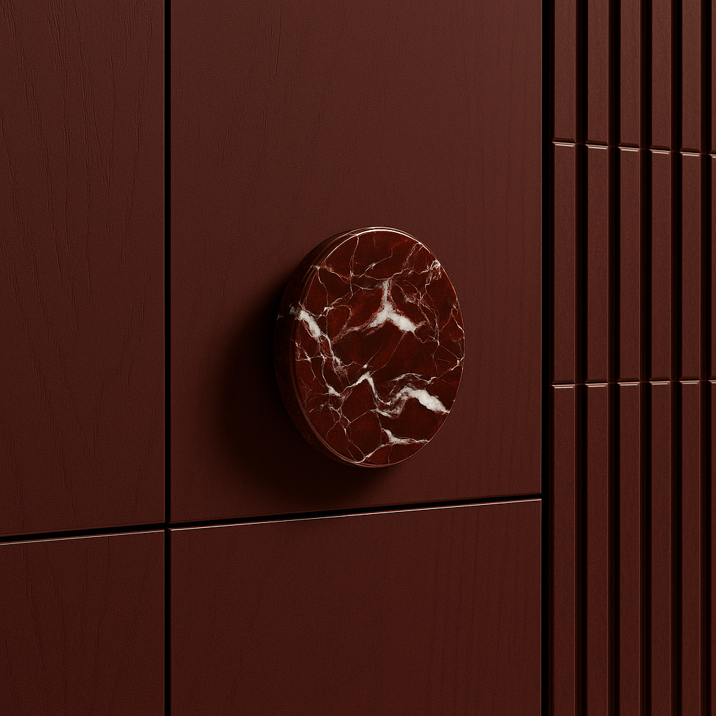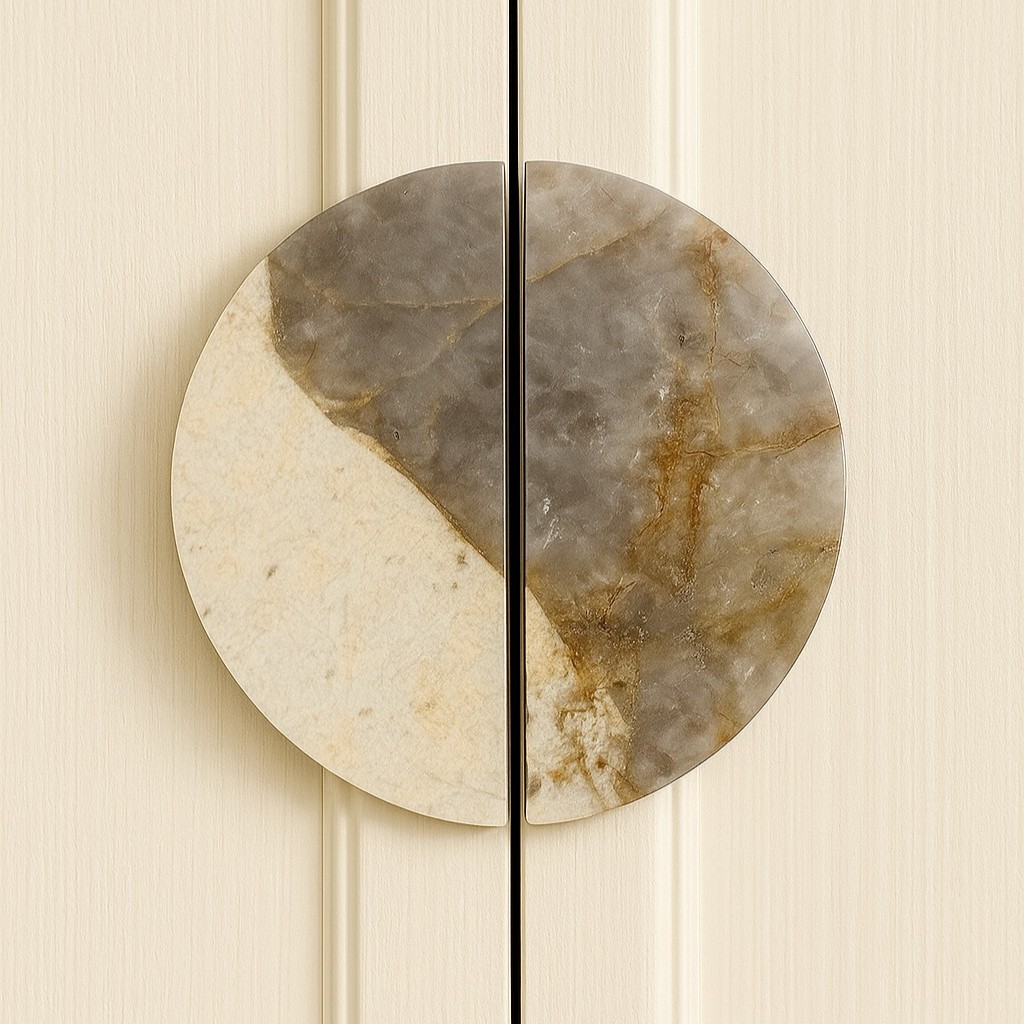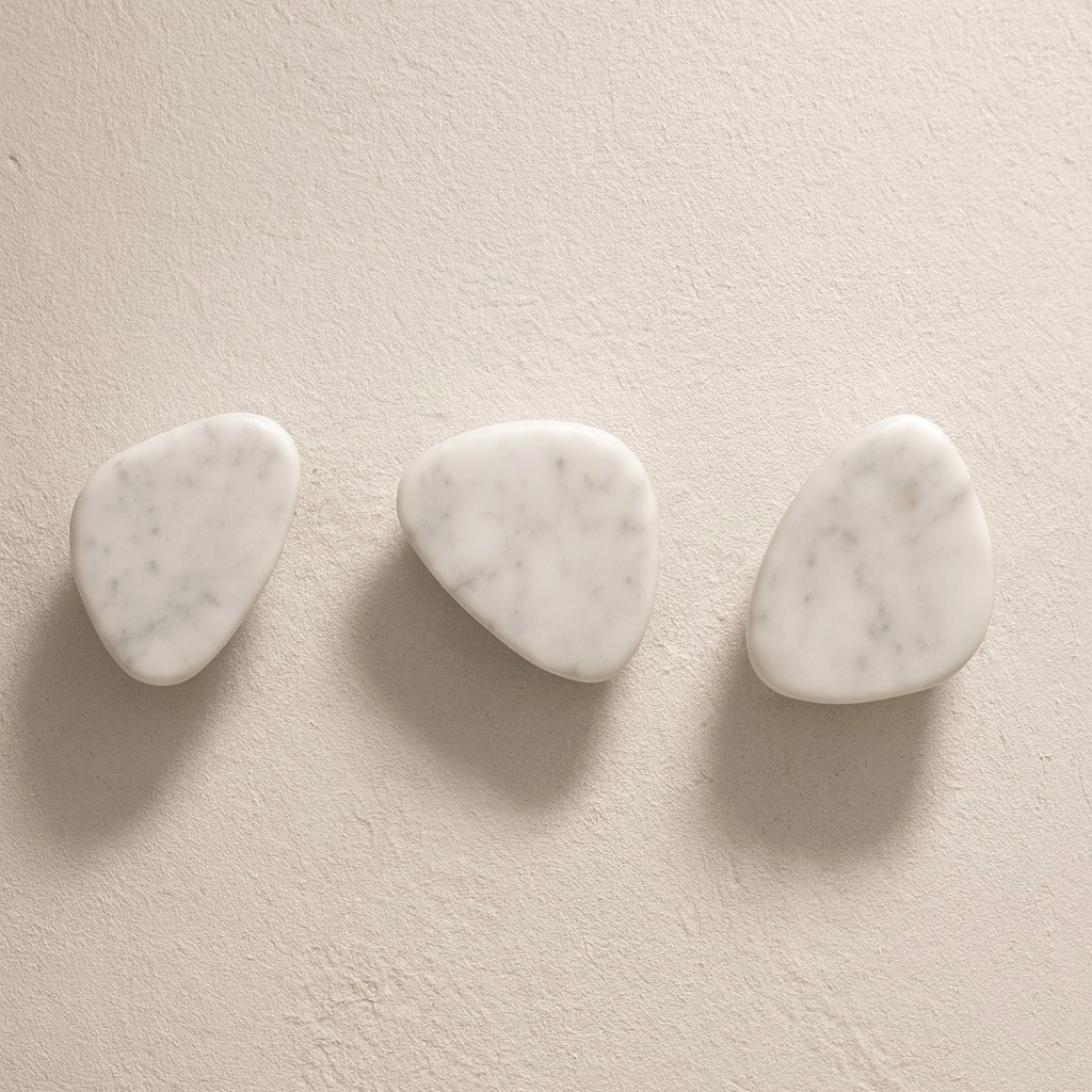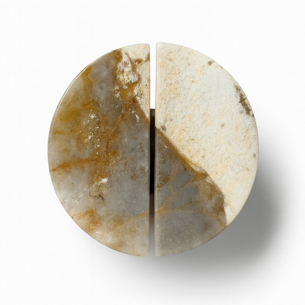 Ręczna obróbka kamienia pozwala uzyskać gładką, zaokrągloną formę, która pięknie współpracuje z miękkim światłem.