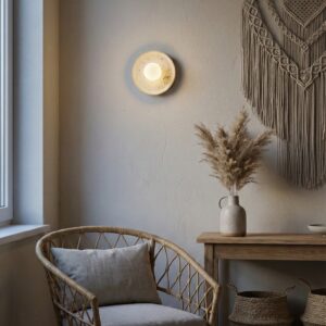 Kinkiet z trawertynu Orbella to autorska oprawa oświetleniowa, w której naturalny kamień i ciepłe światło tworzą wyjątkowy nastrój. Ten kinkiet z trawertynu wyróżnia się elegancją, subtelną formą oraz ręcznym wykonaniem, dzięki czemu staje się dekoracją samą w sobie.