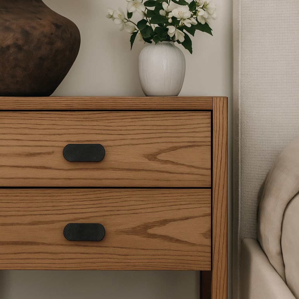 • w sypialni – jako kontrastowy uchwyt do jasnych lub dębowych szafek nocnych